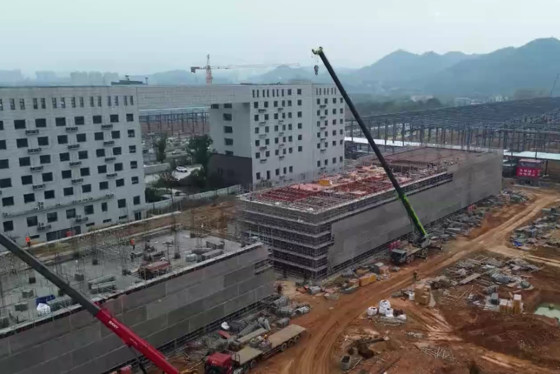 據項目負責人介紹,自今年5月施工單位進場以來,該項目在保證工程質量的前提下,正緊抓工期進行施工。“1號精密車間已經完成了2層A區的鋼筋板和混合板的安裝,目前進行的是B區的安裝。”除了精密車間,項目主廠房基礎承臺及地梁施工接近尾聲,鋼結構吊裝穩步推進,計劃年前完成 1、2號廠房吊裝,庫房本月完成主體結構結頂。